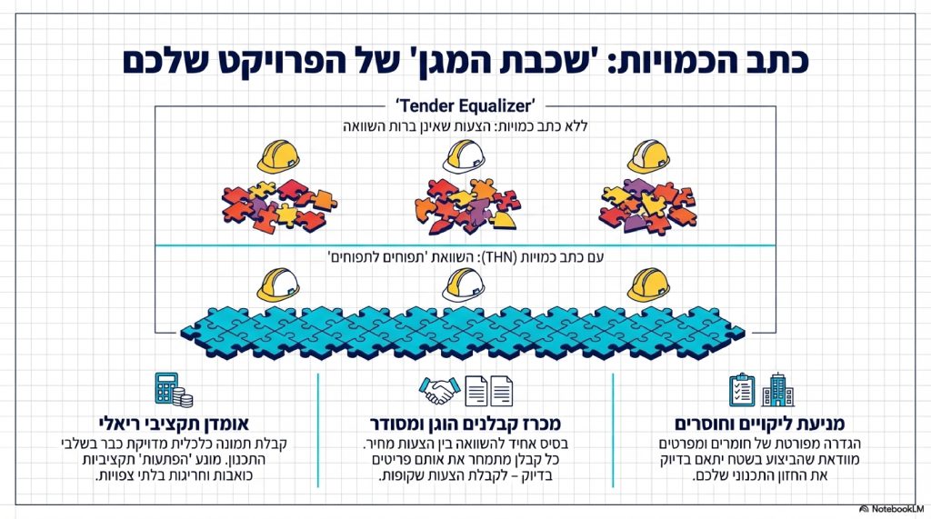 אנחנו מתמחים בהכנת כתבי כמויות מדויקים המאפשרים השוואת הצעות קבלנים הוגנת ("תפוחים לתפוחים") ומונעים חריגות תקציביות.